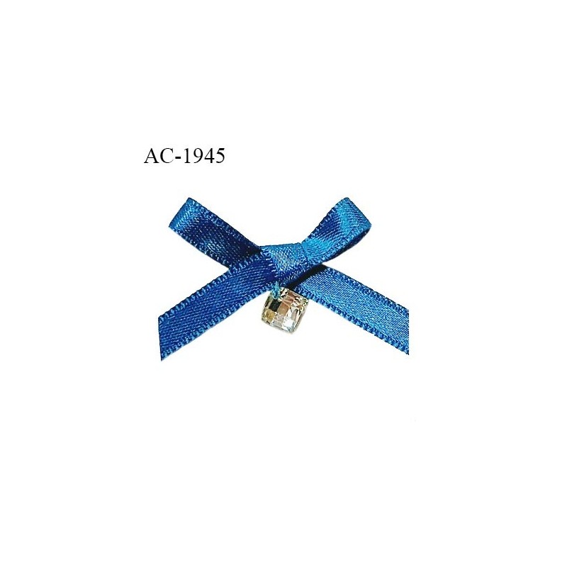 Noeud lingerie satin couleur bleu vert avec un strass haut de gamme largeur 30 mm hauteur 25 mm prix à l'unité