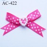 noeud satin hauteur 30 mm largeur 50 mm couleur rose fushia avec pois blancs coeur en perles blanches