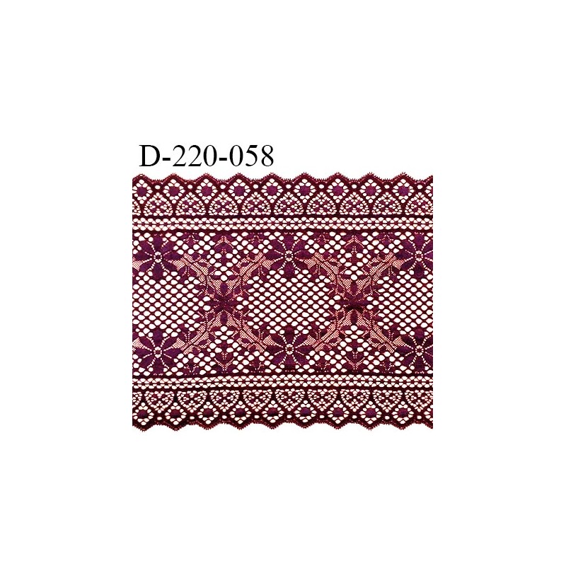 Dentelle 22 cm extensible couleur bordeaux ou grenat très haut de gamme largeur 22 centimètres très belle prix au mètre