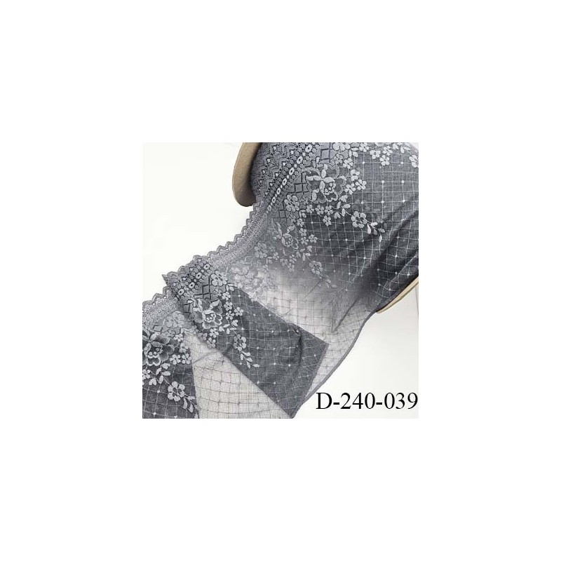 Dentelle 24 cm extensible haut de gamme largeur 24 cm couleur gris très très belle prix pour 1 mètre