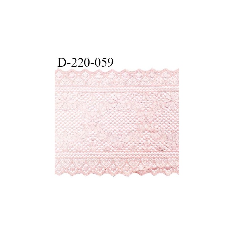 Dentelle 22 cm extensible couleur rose dragée très haut de gamme largeur 22 centimètres très belle prix au mètre