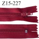 Fermeture zip 15 cm couleur rouge foncé non séparable largeur 2.5 cm glissière nylon largeur 4 mm longueur 15 cm prix à l'unité
