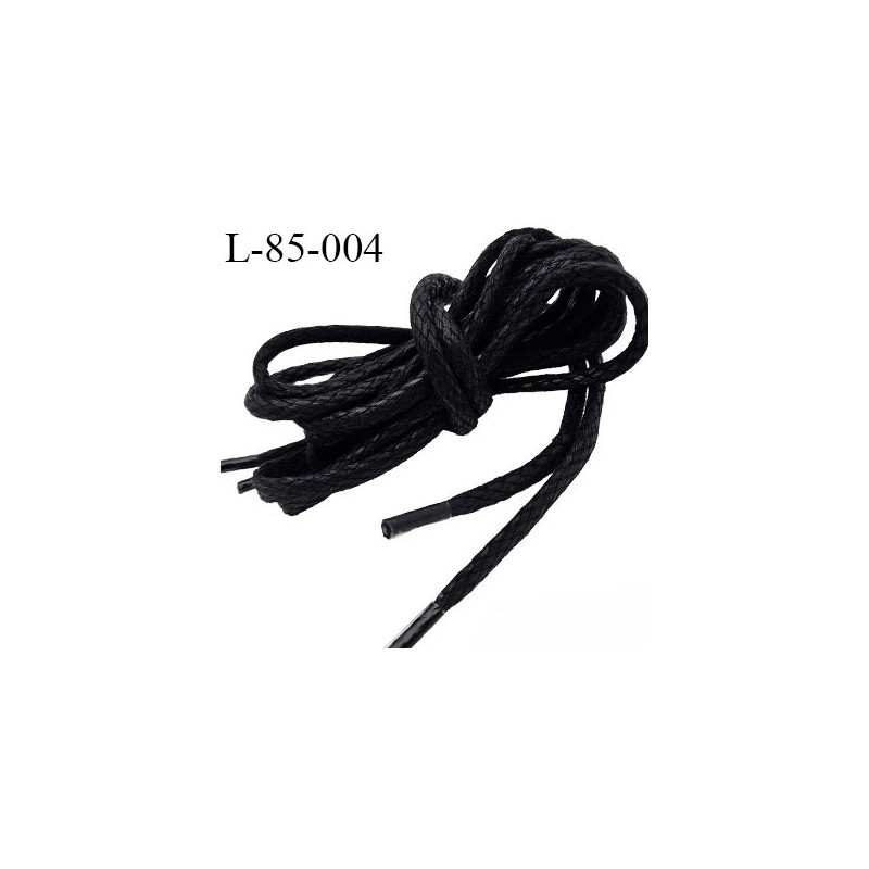 Lacet rond 85 cm couleur noir effet ciré en coton très beau longueur 85 cm largeur 4 mm prix pour une paire