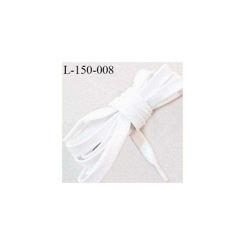 Lacet plat 150 cm couleur blanc largeur 8.5 mm longueur 150 cm embout gainé prix pour une paire