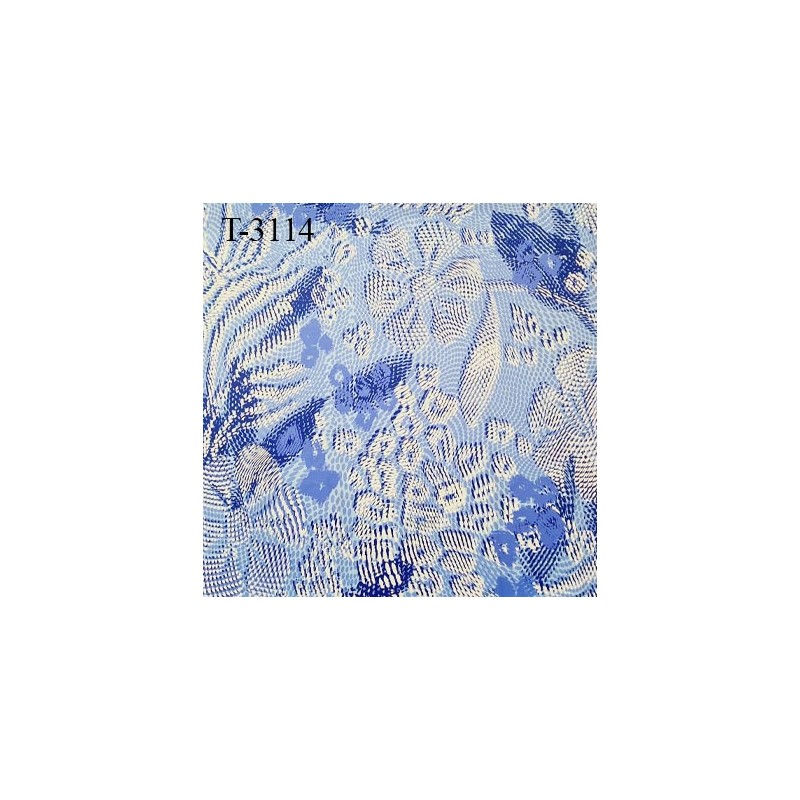 Tissu maillot de bain et lingerie haut de gamme couleur bleu et blanc motifs fleurs lycra élasthanne largeur 160 cm 230 grs au m2 attention pour le relief c'est un effet d'optique