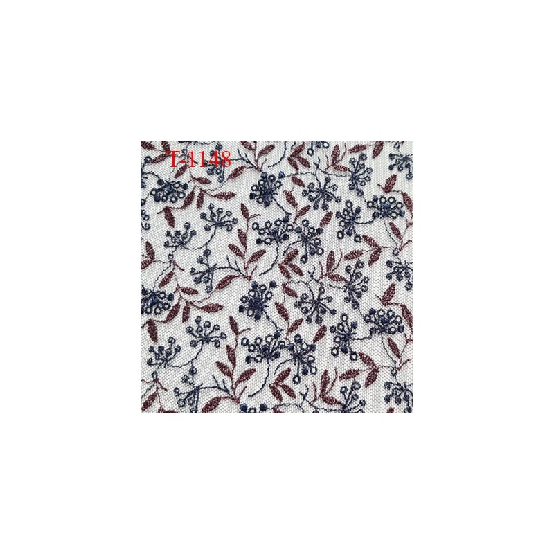 Tissu brodé sur tulle non extensible couleur bleu marine et bordeaux très haut de gamme largeur 135 cm fabriqué pour une très grande marque de lingerie très belle