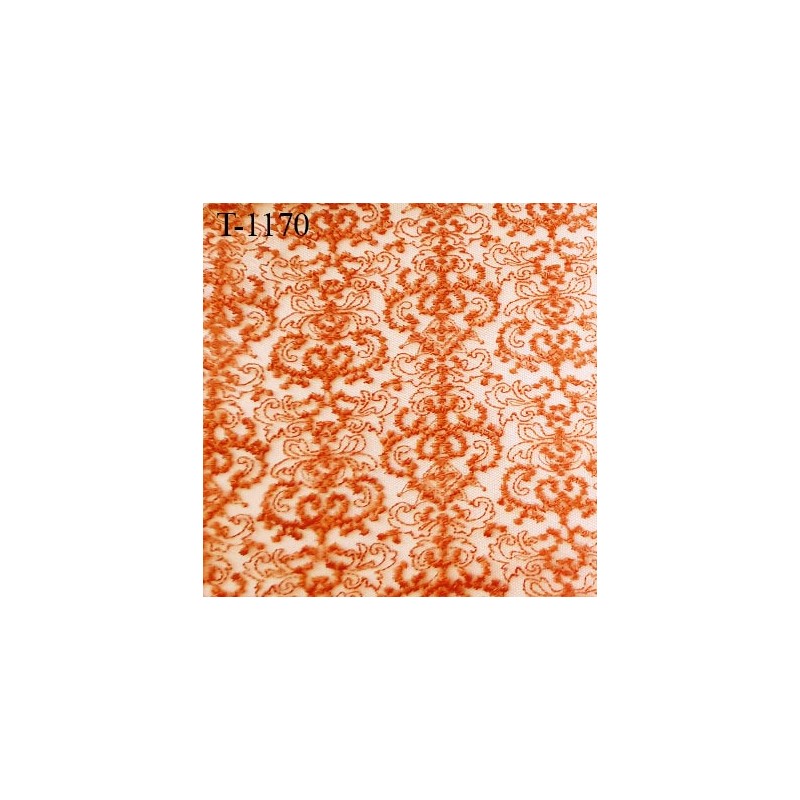 Dentelle brodé sur tulle non extensible couleur rouille très haut de gamme largeur 135 cm fabriqué pour une très grande marque de lingerie très belle